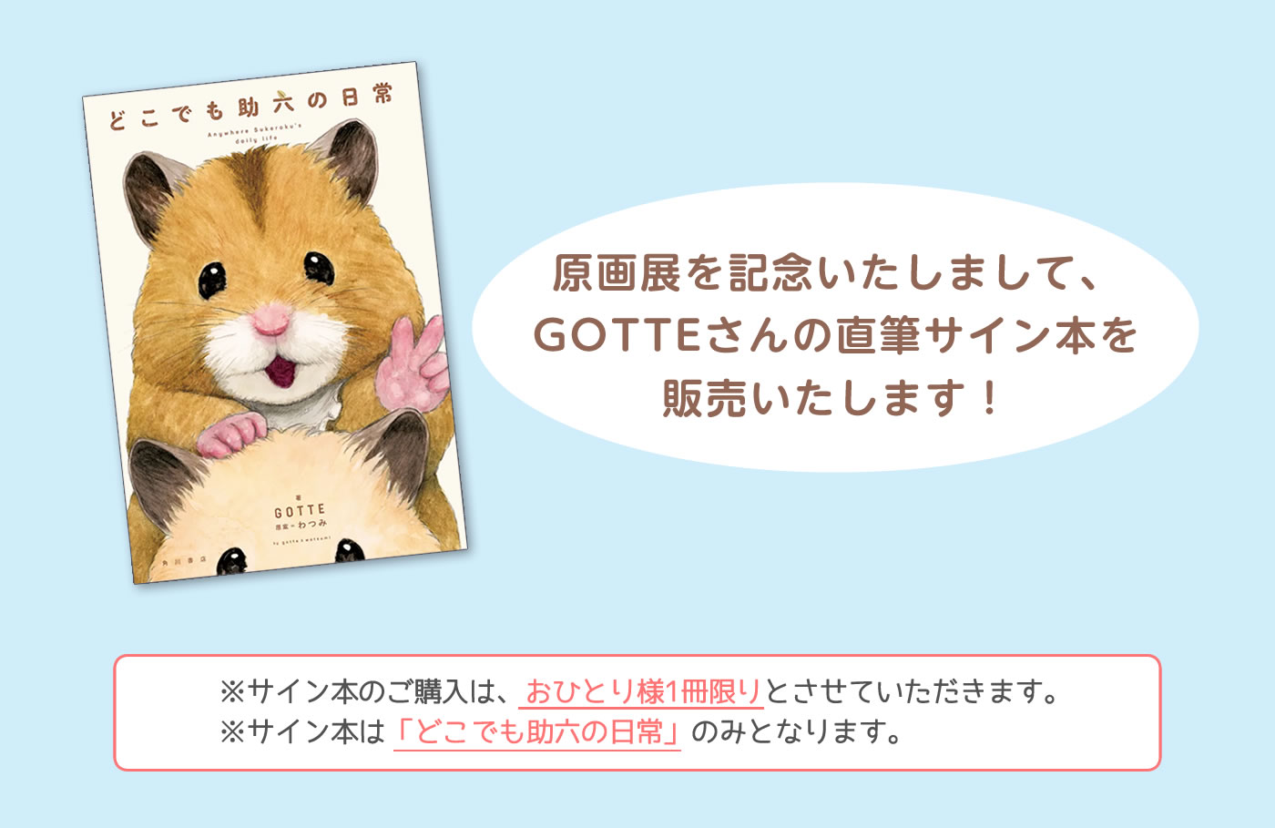 原画展を記念いたしまして、GOTTEさんの直筆サイン本を販売いたします。